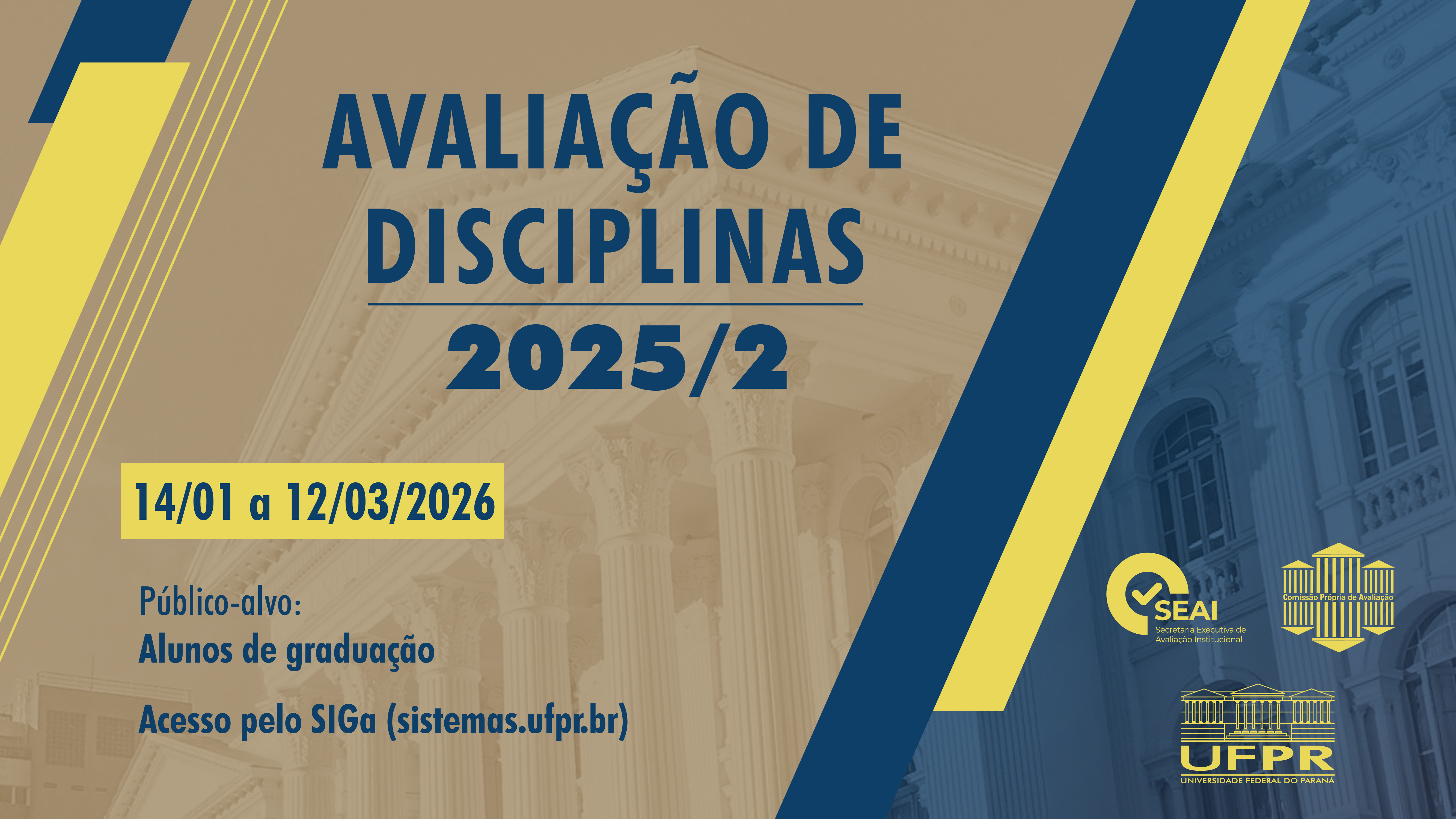 A Comissão Própria de Avaliação (CPA) informa que a Avaliação de Disciplinas 2025.2 está disponível aos estudantes de graduação.